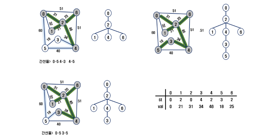 - 3) 모든 정점이 선택될 때까지 1), 2) 과정을 반복
