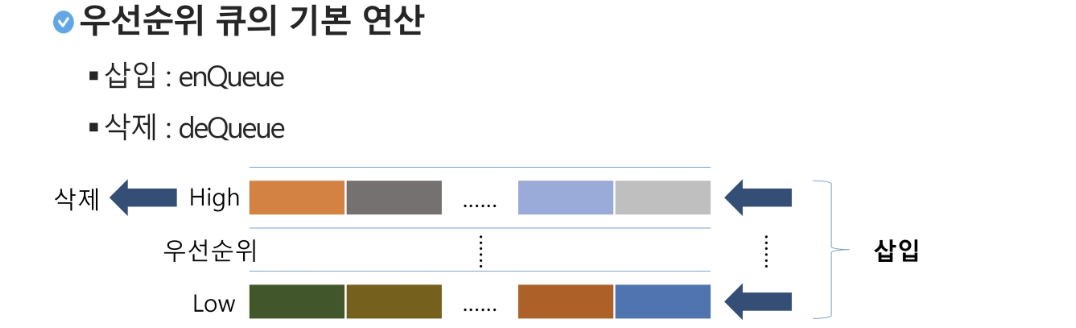 - FIFO 순서가 아니라 우선순위가 높은 순서대로 먼저 나가게 됩니다.