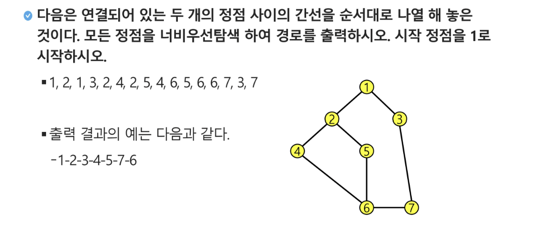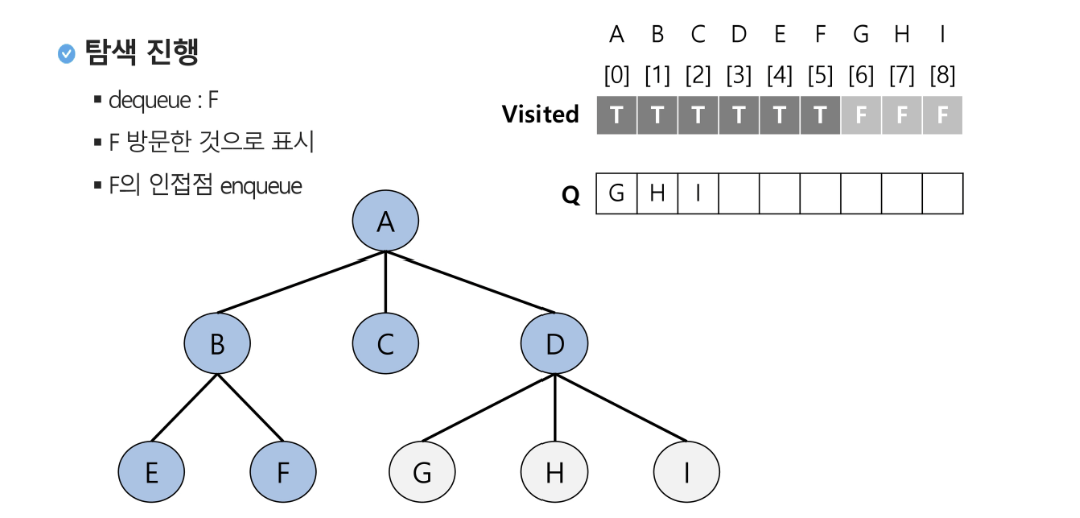 - 인접한 정점들에대해 탐색을 한 후, 차례로 다시 너비우선탐색을 진행해야 하므로, 선입선출 형태의 자료구조인 큐를 활용합니다.