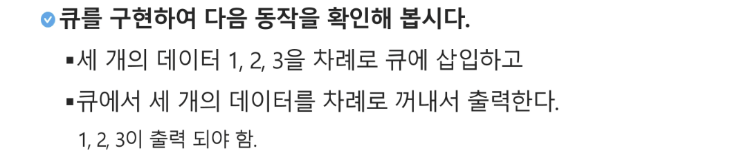 - 큐의 뒤에서는 삽입만 하고, 큐의 앞에서는 삭제만 이루어지는 구조입니다.