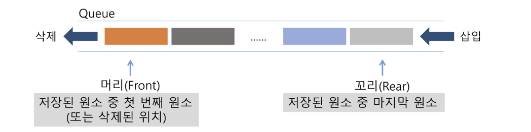 - 스택과 마찬가지로 삽입과 삭제의 위치가 제한적인 자료구조