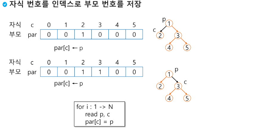 - 편향 이진 트리의 경우에 사용하지 않는 배열 원소에 대한 메모리 공간 낭비가 발생합니다.