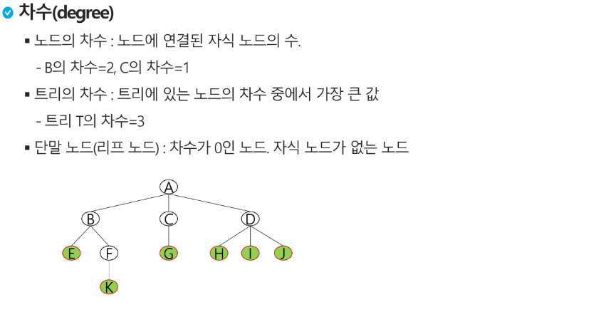 - 이들 T1, ..., TN은 각각 하나의 트리가 되며(재귀적 정의) 루트의 부 트리(subtree)라고 합니다.