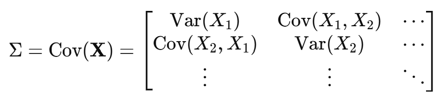 - 공분산 행렬은 대칭 행렬이며, 양의 정부호(positive semi-definite)