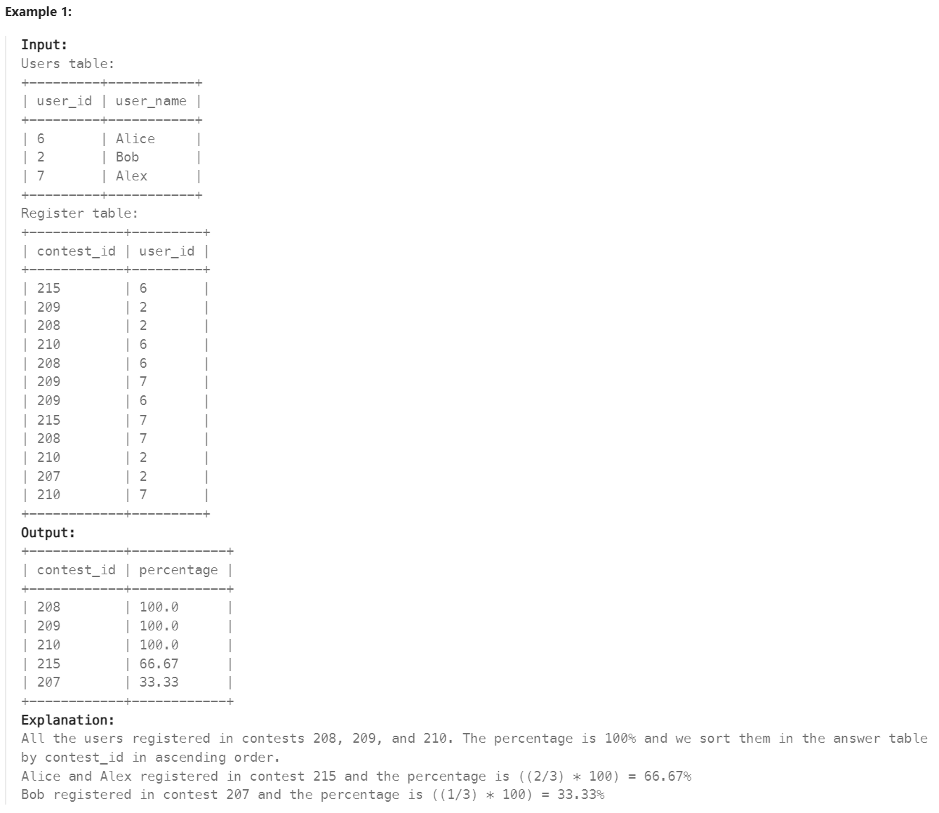 Percentage of Users Attended a Contest _ Easy. LeetCode * 본문