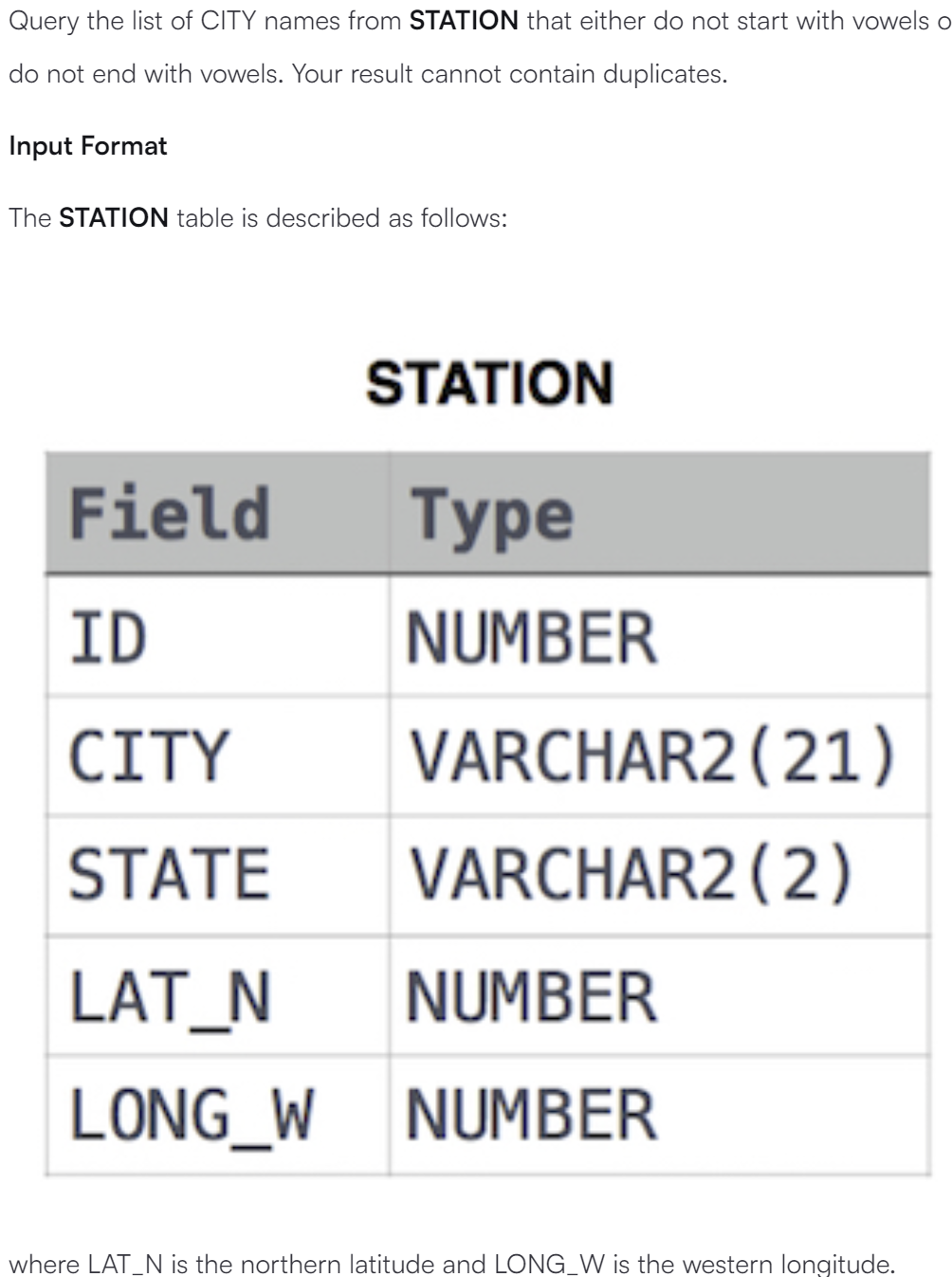 WHERE CITY REGEXP '^[^aeiouAEIOU]'