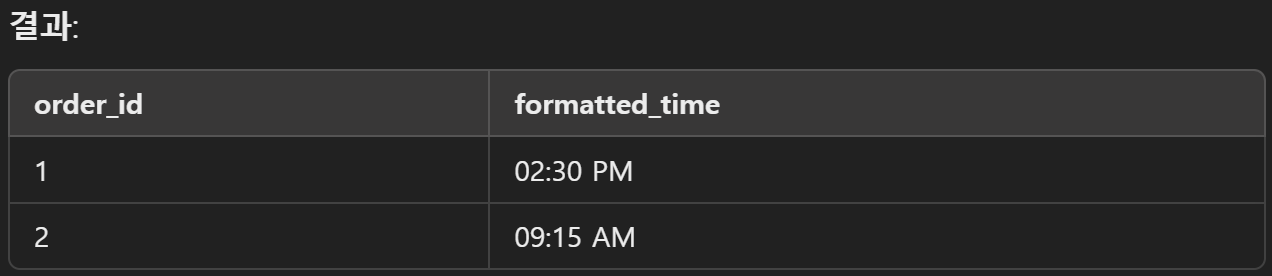 SELECT order_id, DATE_FORMAT(order_date, '%h:%i %p') AS formatted_time