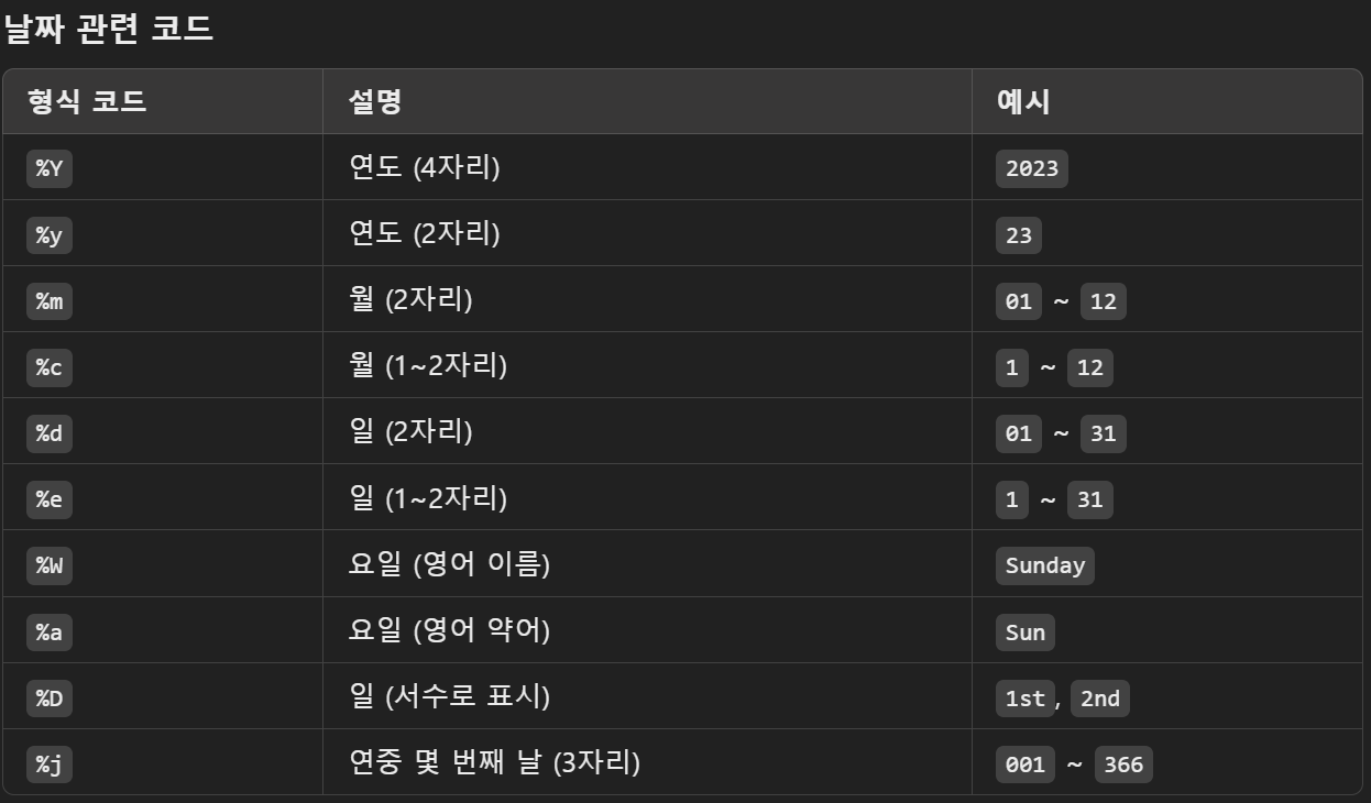 - date: 형식을 변환할 날짜 또는 시간 값.