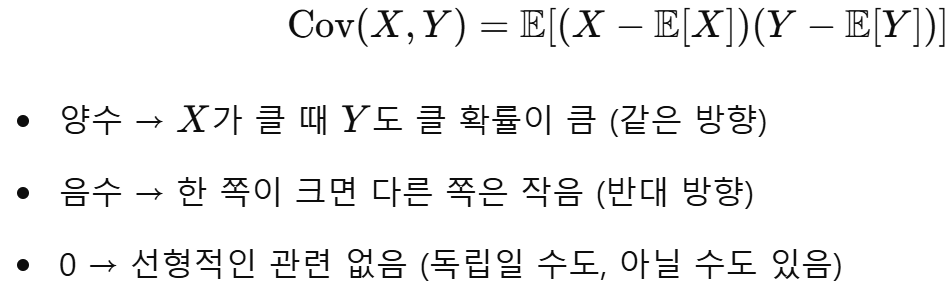 - 독립이면 항상 공분산 = 0