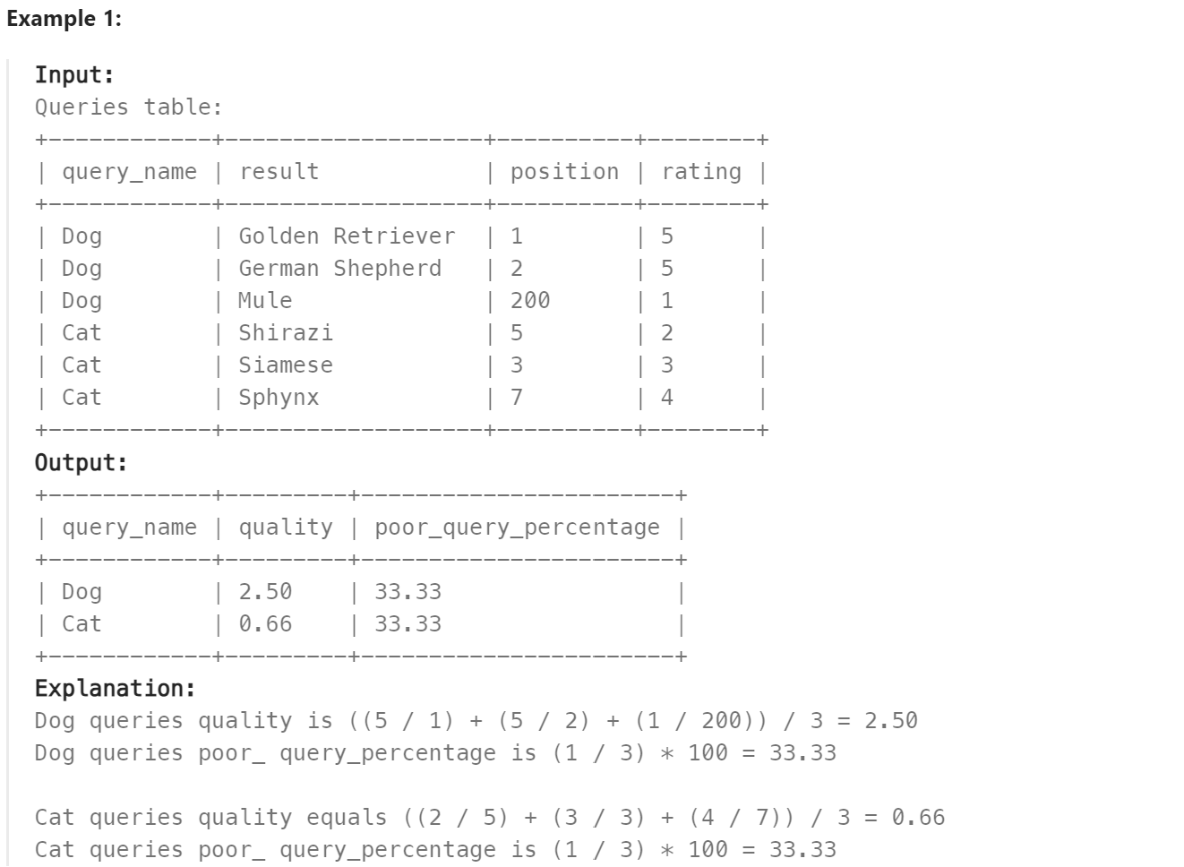 Queries Quality and Percentage _ Easy. LeetCode * 본문