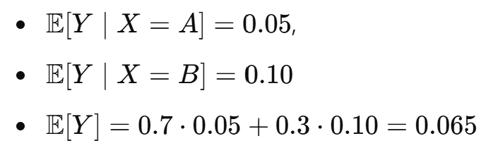 "조건부 평균(예: 각 그룹의 평균)" × "그 그룹이 나올 확률"의 총합