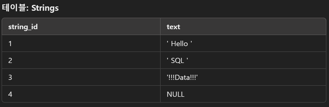 - TRIM은 문자열의 앞뒤 공백을 제거.