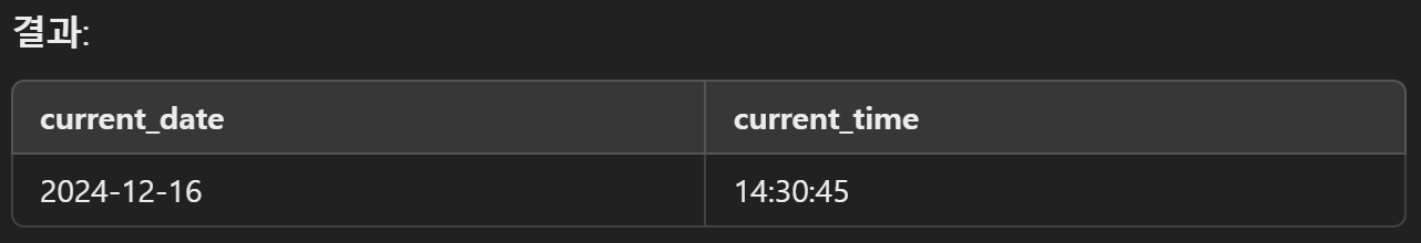 - **NOW**는 SQL 쿼리 실행이 시작된 시각을 기준으로 반환.