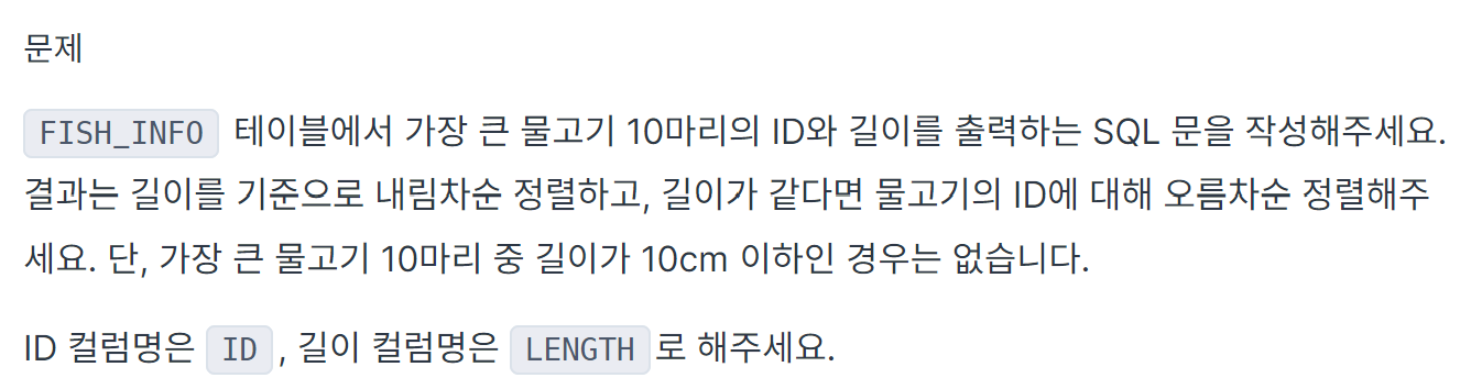 가장 큰 물고기 10마리 구하기 _ Lv1. 프로그래머스 본문