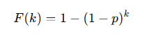 - 성공이 1~k번째 시행에서 발생할 확률: 1 − (1 − p)k
