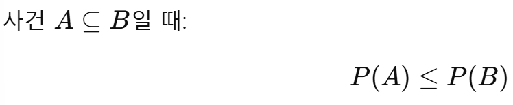 더 큰 집합일수록 확률이 더 크거나 같음 → 확률은 단조적으로 증가하는 함수