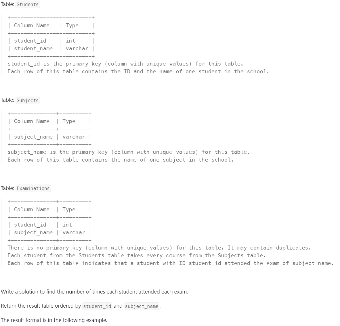 Students and Examinations _ Easy. Leetcode * 본문