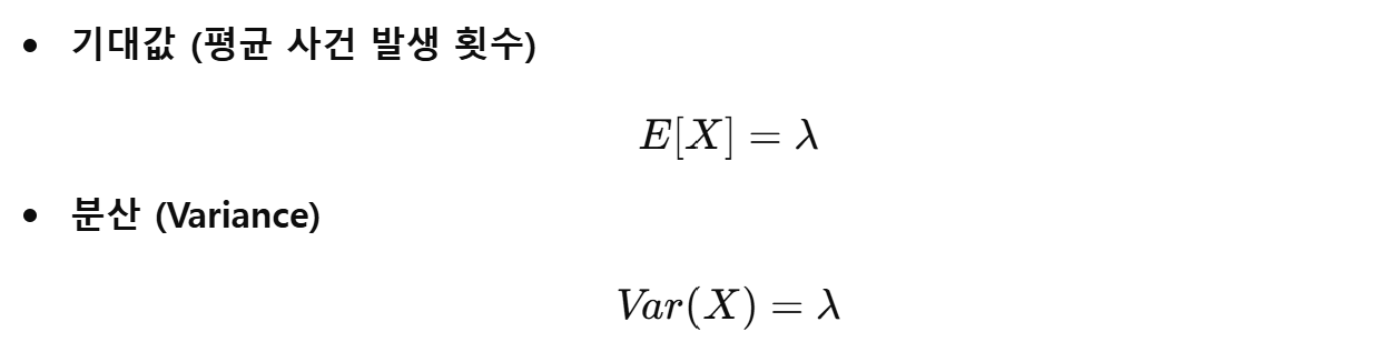 - λ = 단위 시간(공간) 당 평균 발생 횟수