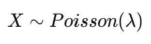 확률 변수가 X가 포아송 분포를 따른다면: