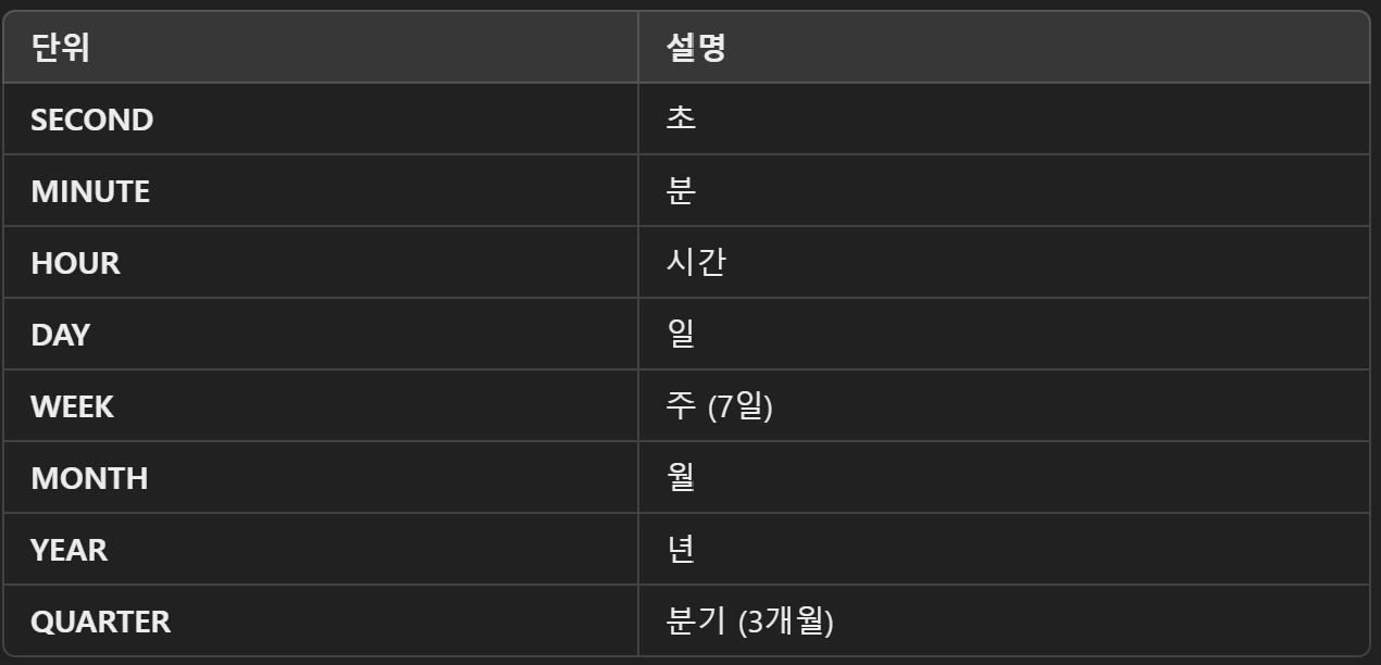 INTERVAL 단위