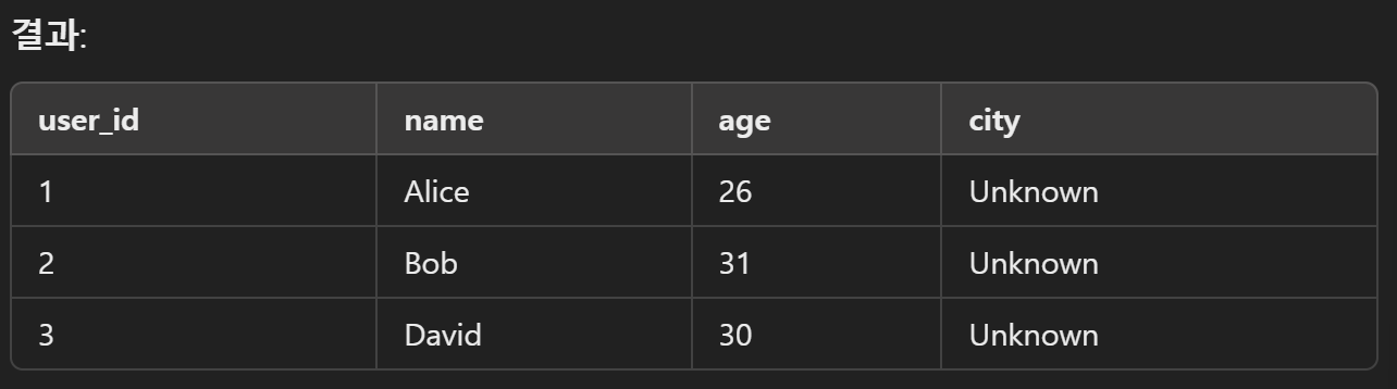 문제: 모든 사용자의 도시를 'Unknown'으로 변경.