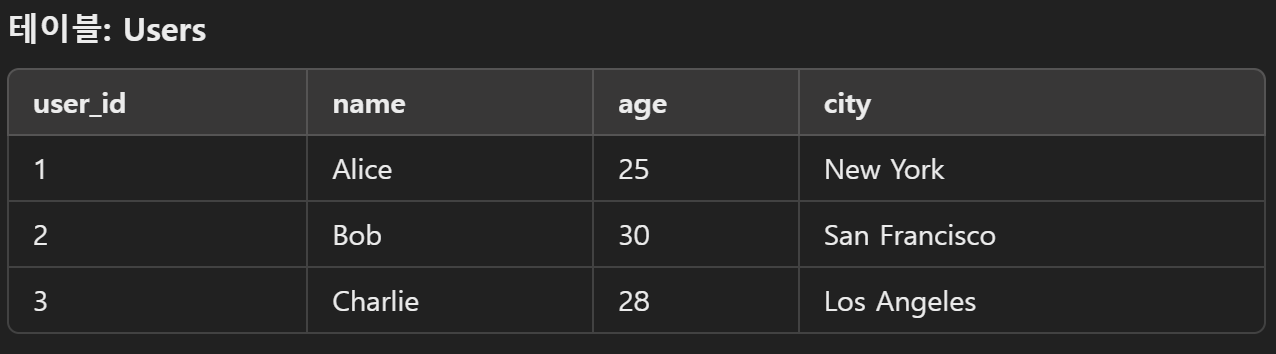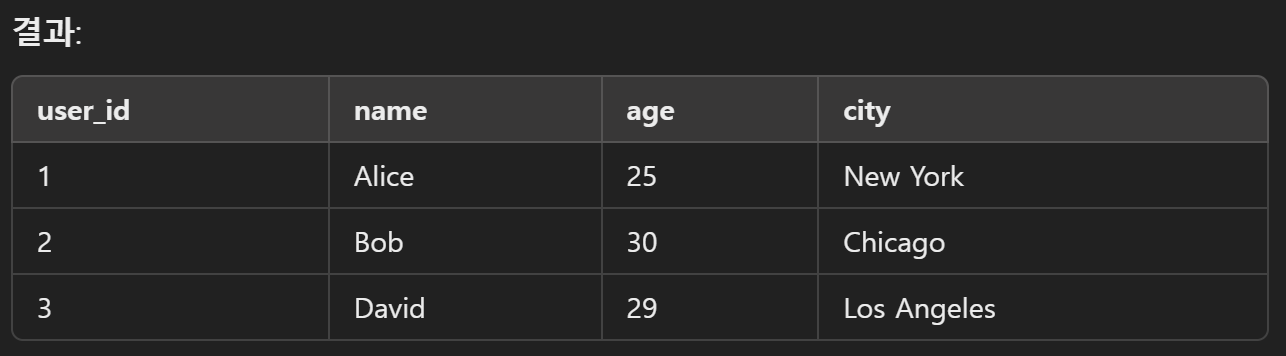 문제: user_id = 2인 사용자의 도시를 'Chicago'로 변경.