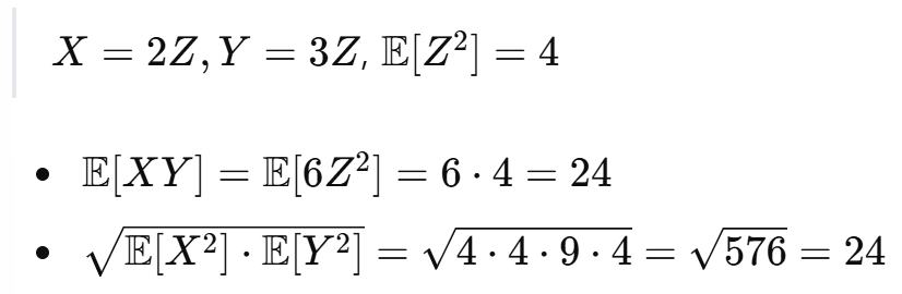 두 변수의 곱의 기댓값(상관도)이, 각각의 제곱 기댓값(분산 수준)의 곱의 제곱근보다 크지 않음