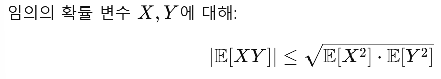 두 변수의 곱의 기댓값(상관도)이, 각각의 제곱 기댓값(분산 수준)의 곱의 제곱근보다 크지 않음