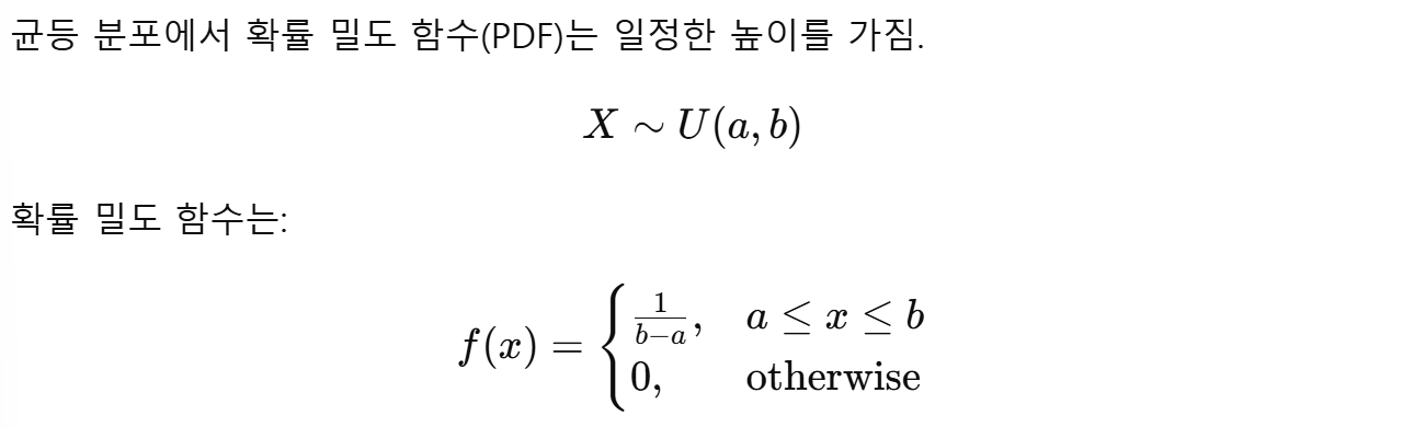 즉, 특정 구간 [a, b]에서 모든 값이 균등한 확률을 가짐.