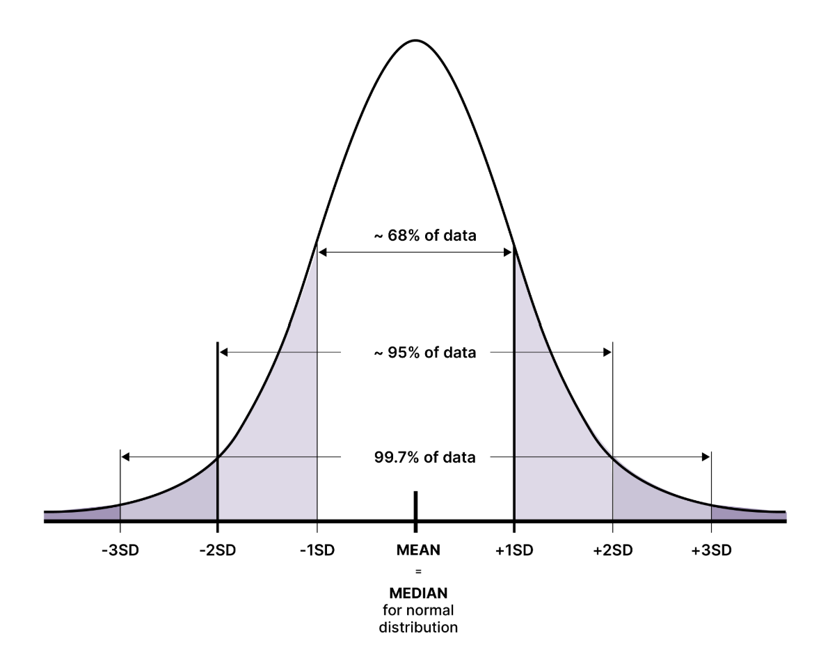 - 평균 ± 2σ → 전체 데이터의 95% 포함
