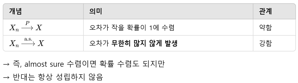 확률 수렴 vs 거의 확실한 수렴