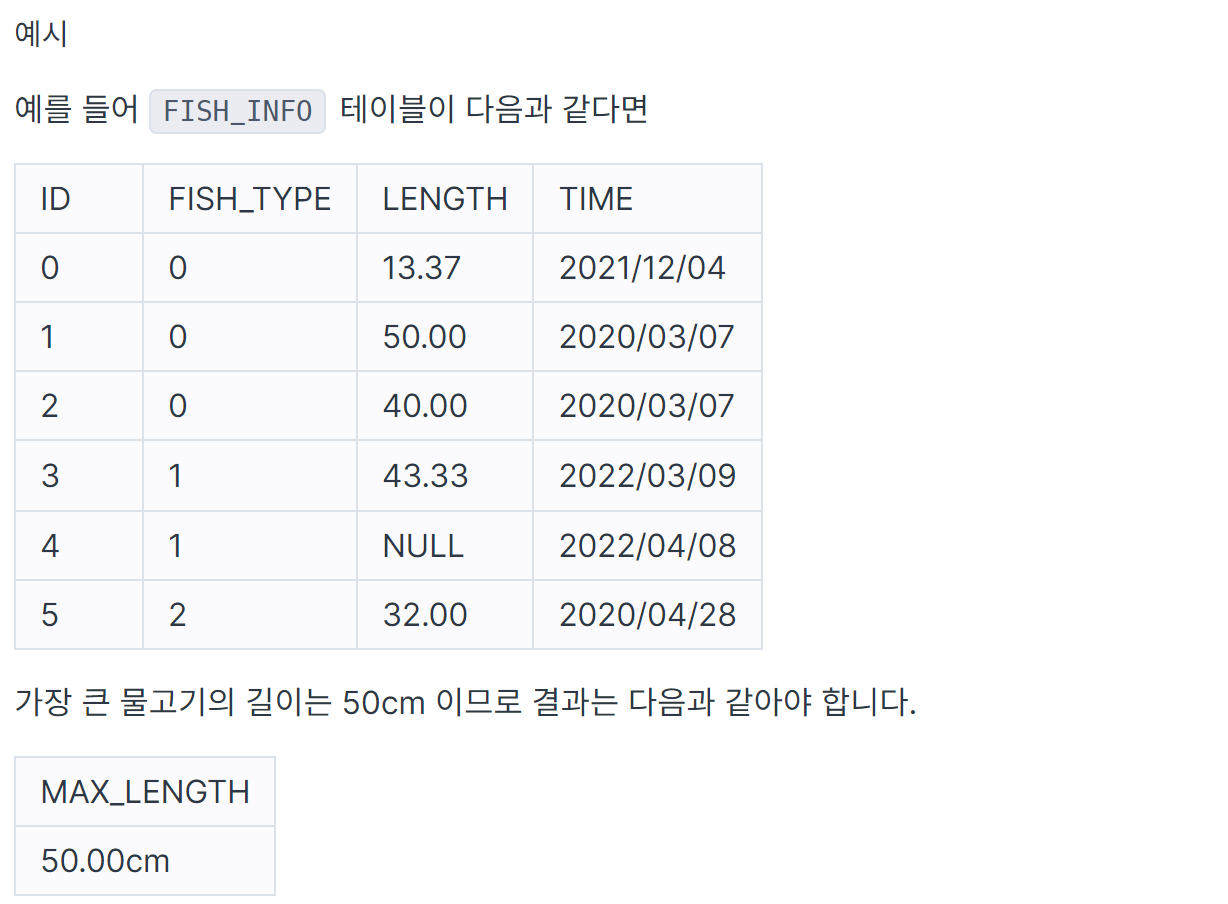 잡은 물고기 중 가장 큰 물고기의 길이 구하기 _ Lv1. 프로그래머스 * 본문