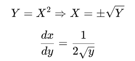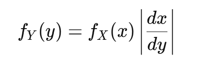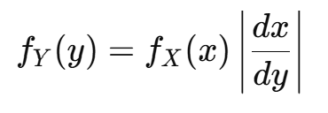이때, Y의 확률 밀도 함수(PDF) fY(y)를 구하려면 다음 공식을 사용해야 한다.