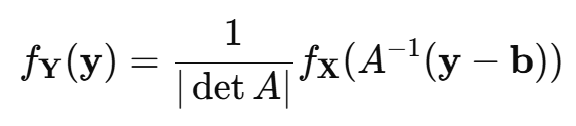 즉, 선형 변환을 적용하면 확률 밀도가 변하지만, 야코비 행렬식의 역수를 곱해줘야 한다.
