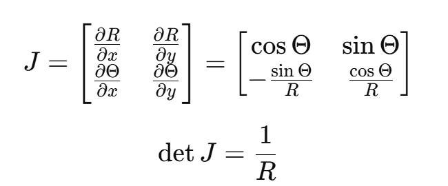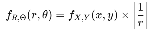 즉, 원형 좌표계로 변환할 때 밀도 함수가 반지름에 따라 조정된다.