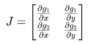 여기서 야코비 행렬(Jacobian Matrix)은 다음과 같다: