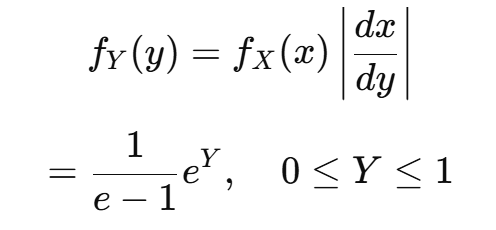 즉, 새로운 변수의 확률 밀도를 구하려면 원래 변수의 밀도에 변환 함수의 미분을 곱해줘야 한다.