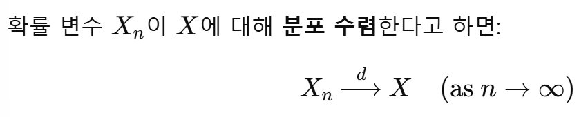 확률 변수 자체의 수렴이 아니라, 분포 형태의 수렴을 말한다.