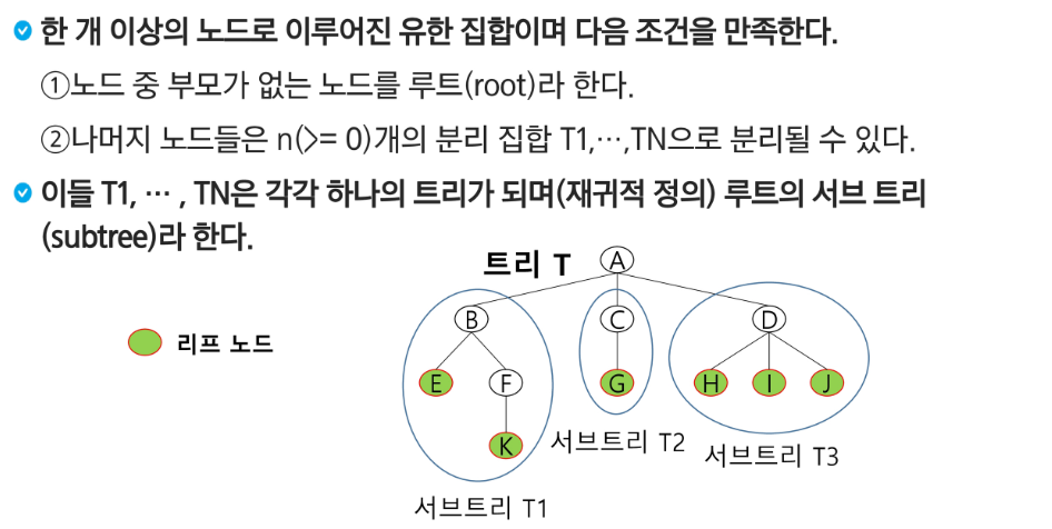 - 각 노드는 자식 노드가 없거나 하나 이상이 존재할 수 있습니다.