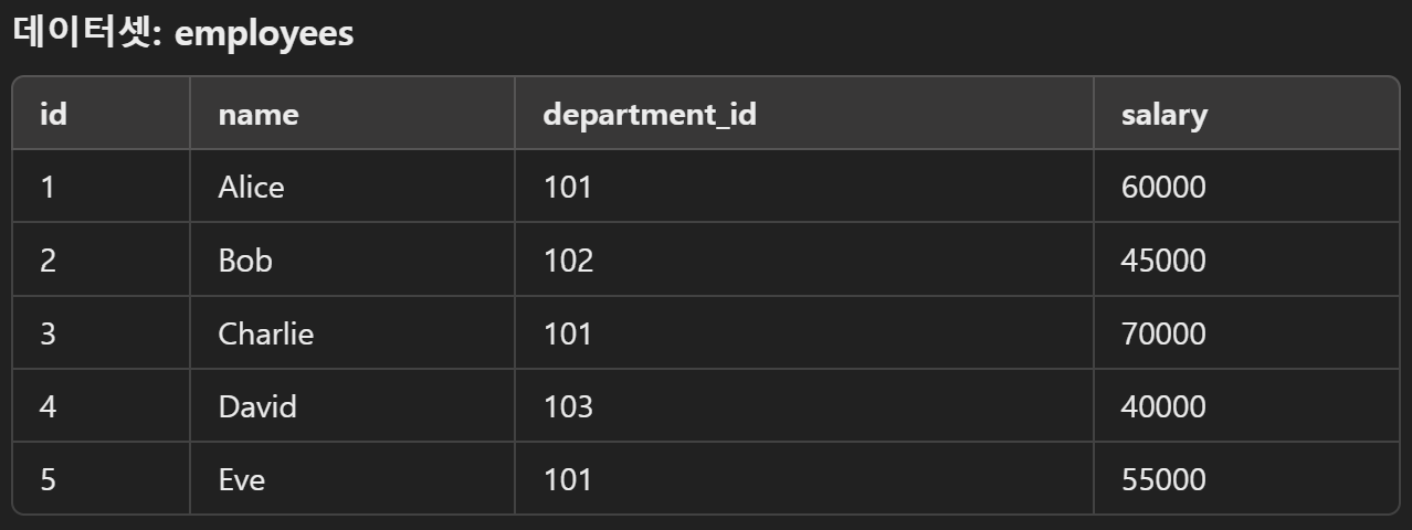 WHERE salary > 50000;'SQL > 개념' 카테고리의 다른 글