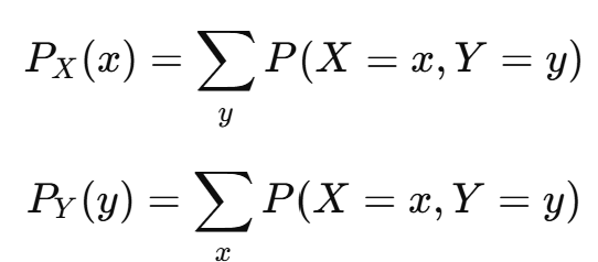 결합 분포에서 다른 변수의 축을 적분/합산하여 제거하면 주변 분포가 된다.