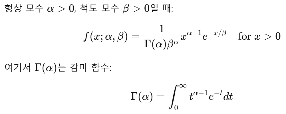 주로 대기 시간, 생존 시간, 누적 이벤트 발생 시간 등을 모델링할 때 사용된다.