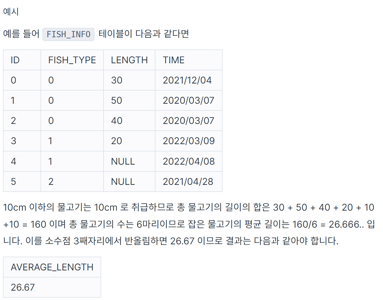 잡은 물고기의 평균 길이 구하기 _ Lv1. 프로그래머스 * 본문