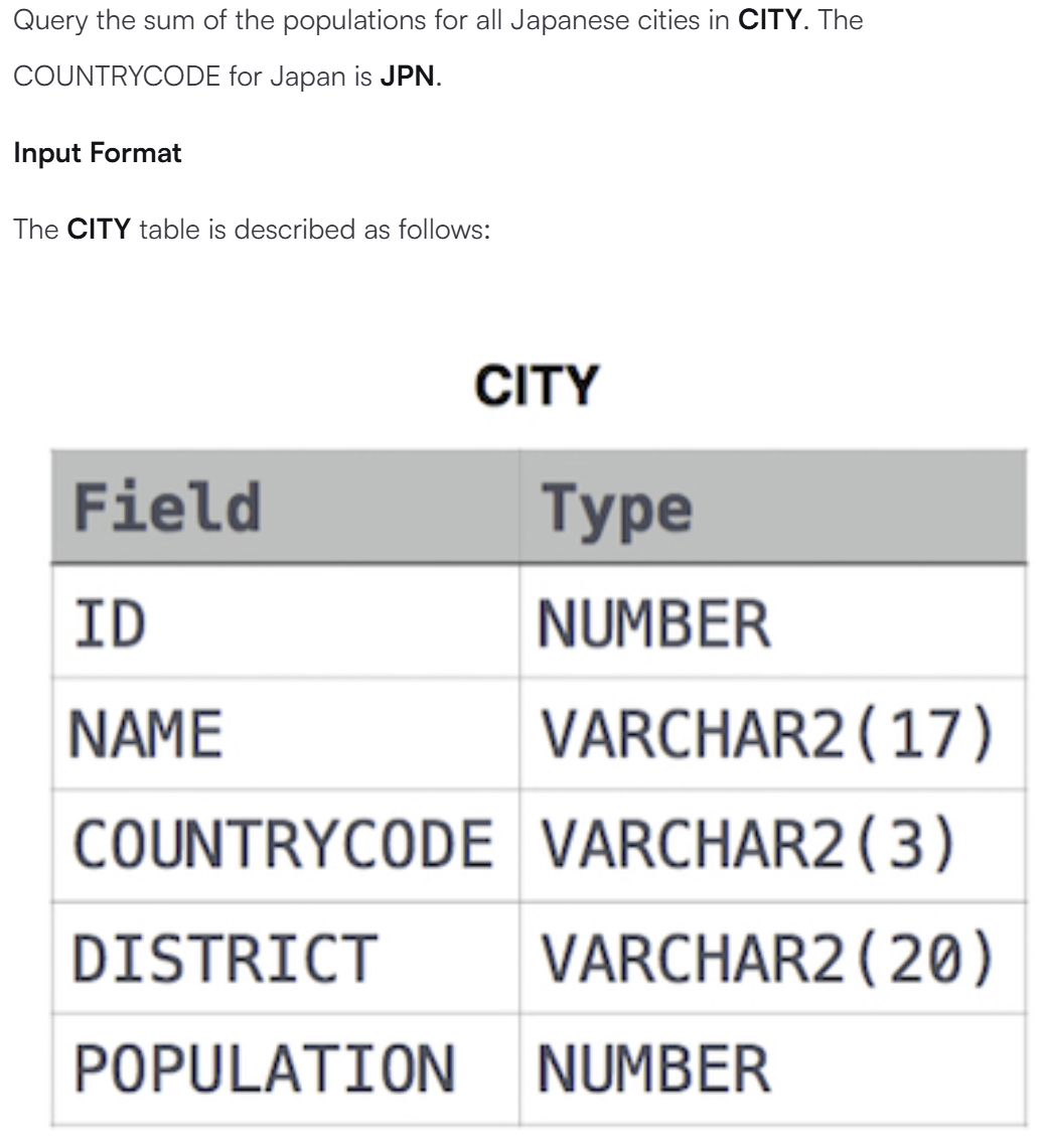 Japan Population _ Easy. HackerRank 본문