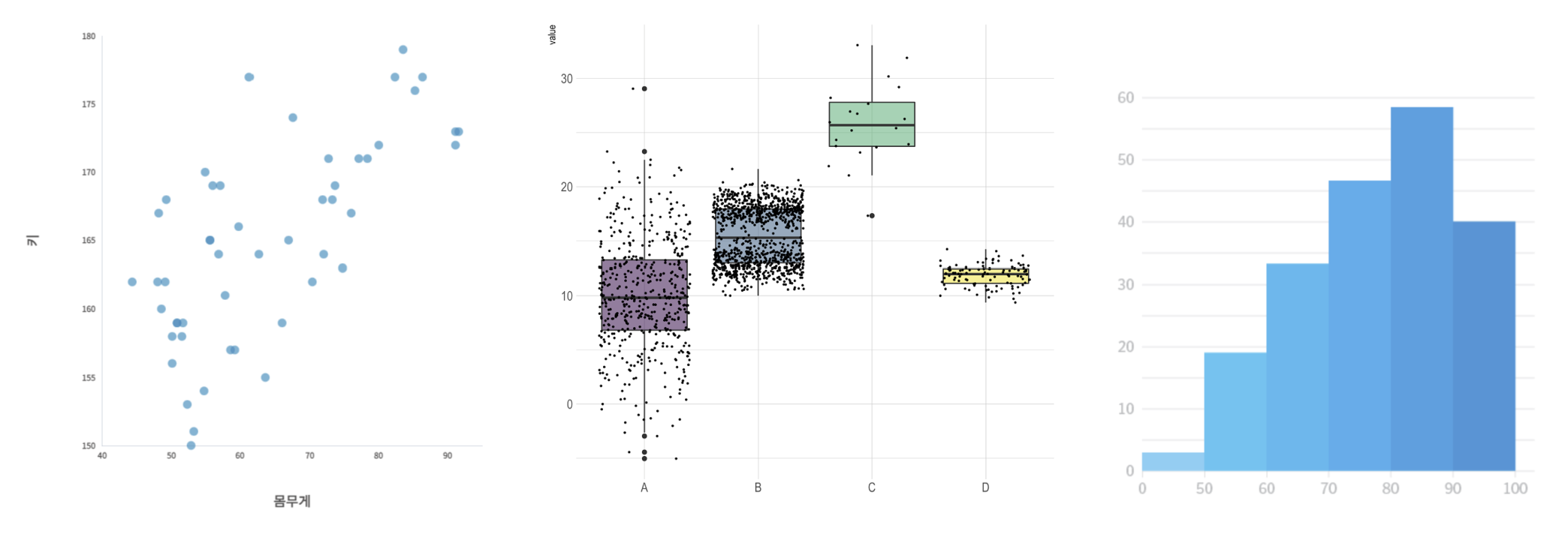 예를 들어, 평균 몸무게가 같더라도 대부분이 65~75kg인 A반과 55~85kg 대로 넓게 분포한 B반은 분명 특성이 다르기 때문에 이러한 요소도 수치적으로 설명이 필요합니다.
