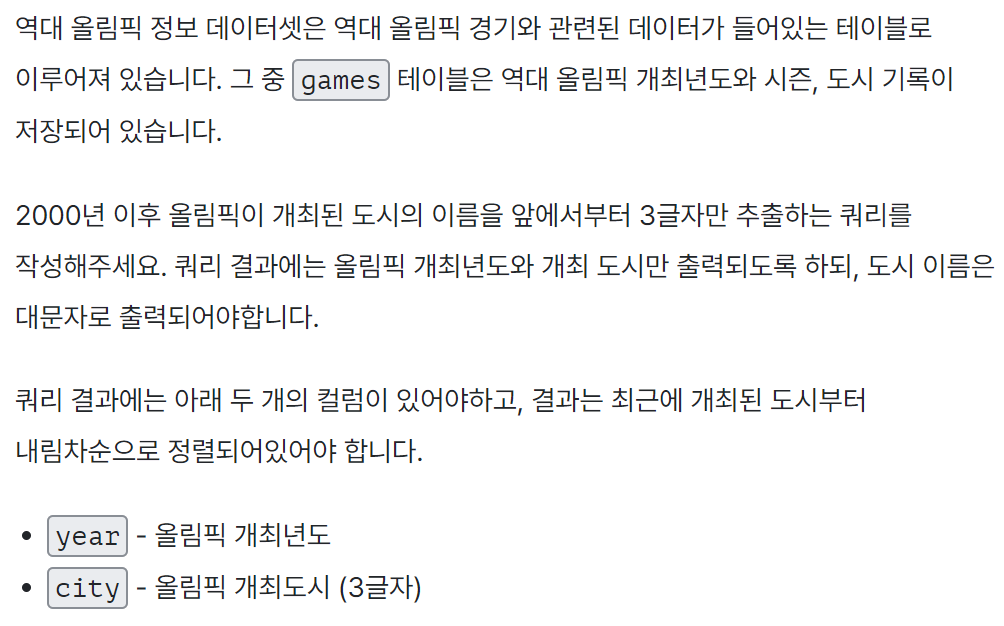 일단 문제를 좀 잘 읽어야 할거 같다. 2000년도 이후 데이터만 추출해야 하는데 그걸 모르고 계속 제출했다가 테스트케이스 9개가 계속 틀리는 상황이 발생했다.