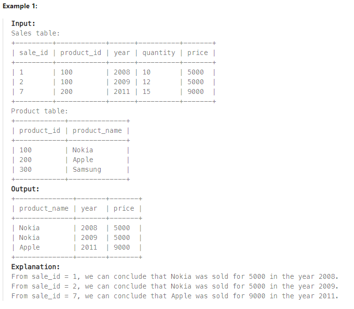 SELECT Product.product_name, Sales.year, Sales.price
