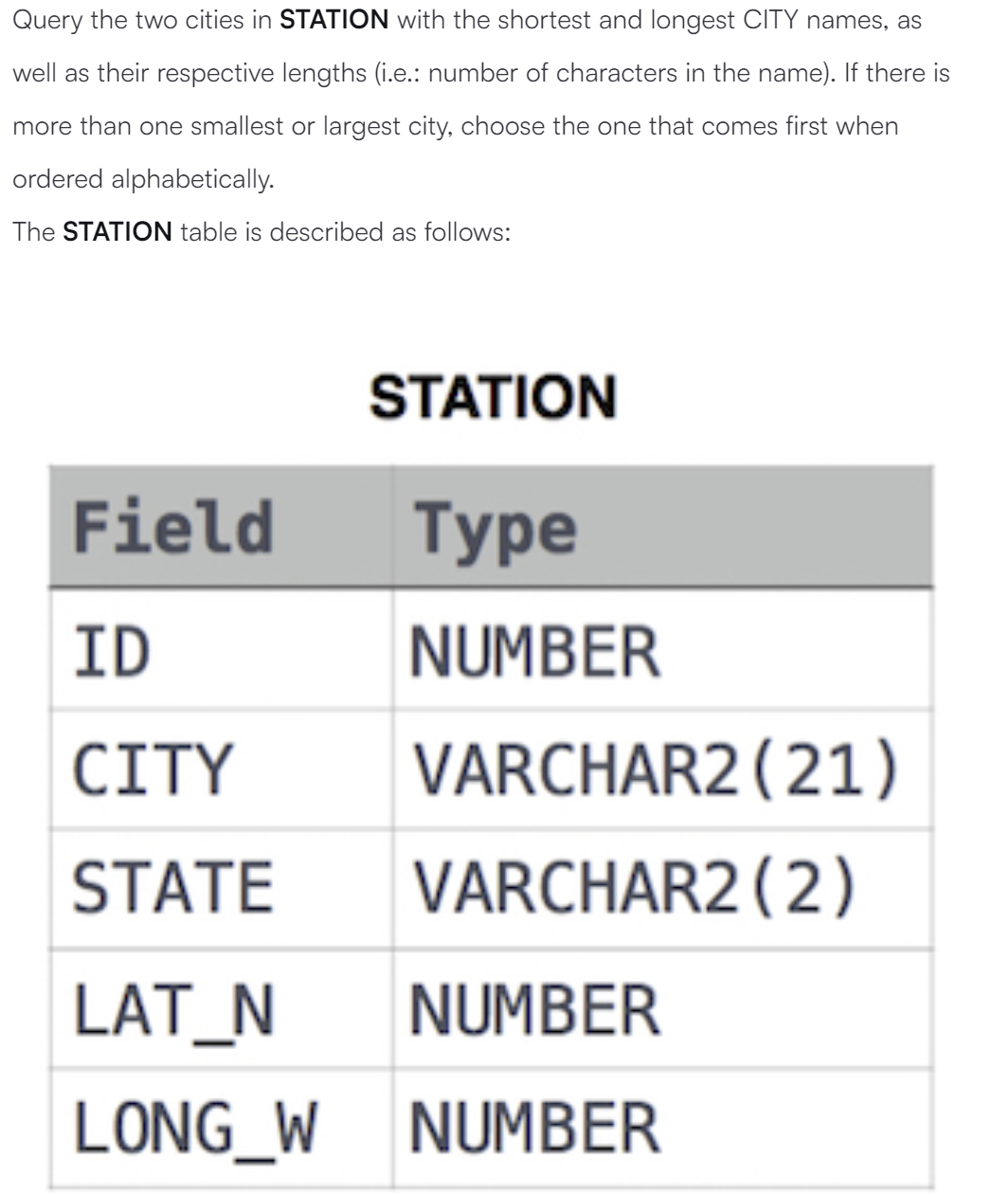 ORDER BY LENGTH(CITY) DESC, CITY ASC