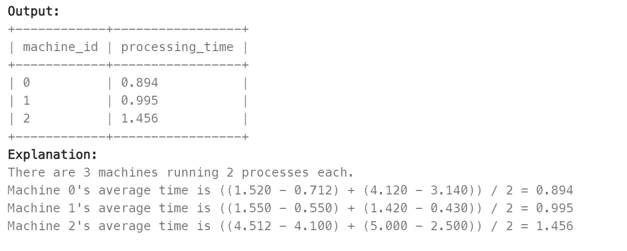 - 그다음 machine_id끼리 GROUP BY를 하고 AVG를 통해 평균값을 계산했다.