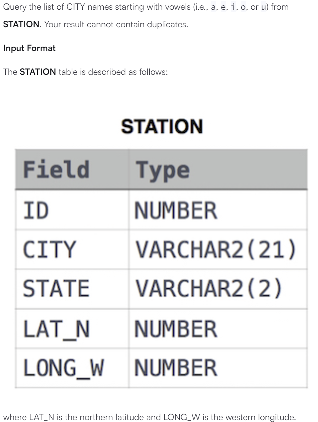 Weather Observation Station 6 _ Easy. HackerRank * 본문